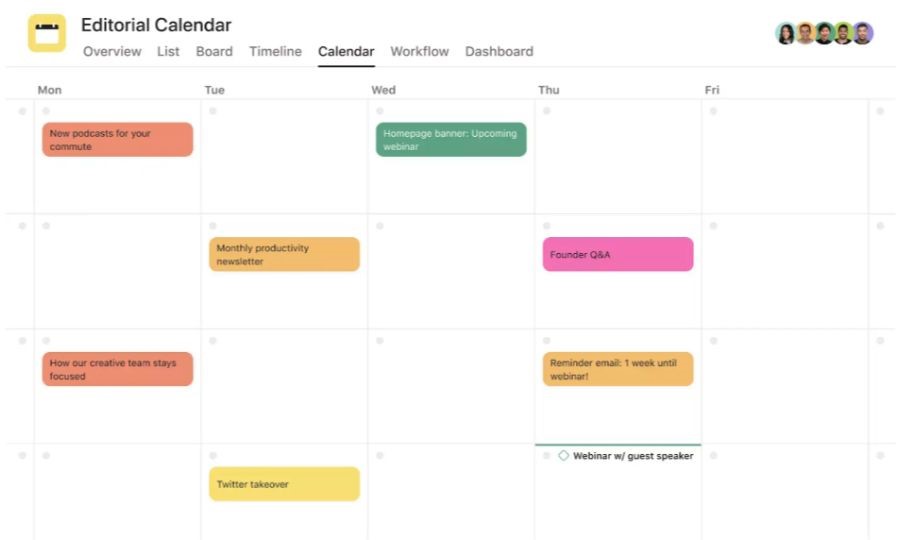 Calendario editorial de Asana